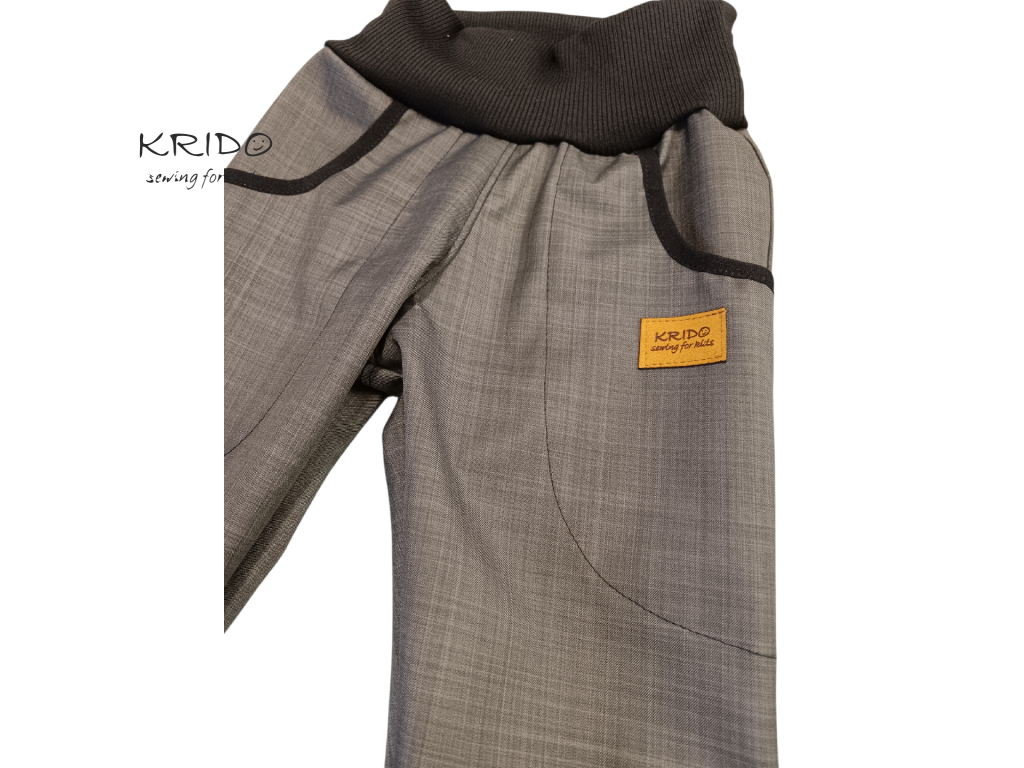 Tieto  nohavice šijem z jarného softshellu, ktoré sú známe so svojou "kockovanou" rubovou stranou. Táto vnútorná strana zabezpečuje miernu hrejivosť. Medzi vonkajšou - oderuvzdornou- stranou je membrána, ktorá poskytuje lepšiu odolnosť voči dažďu a vetru.